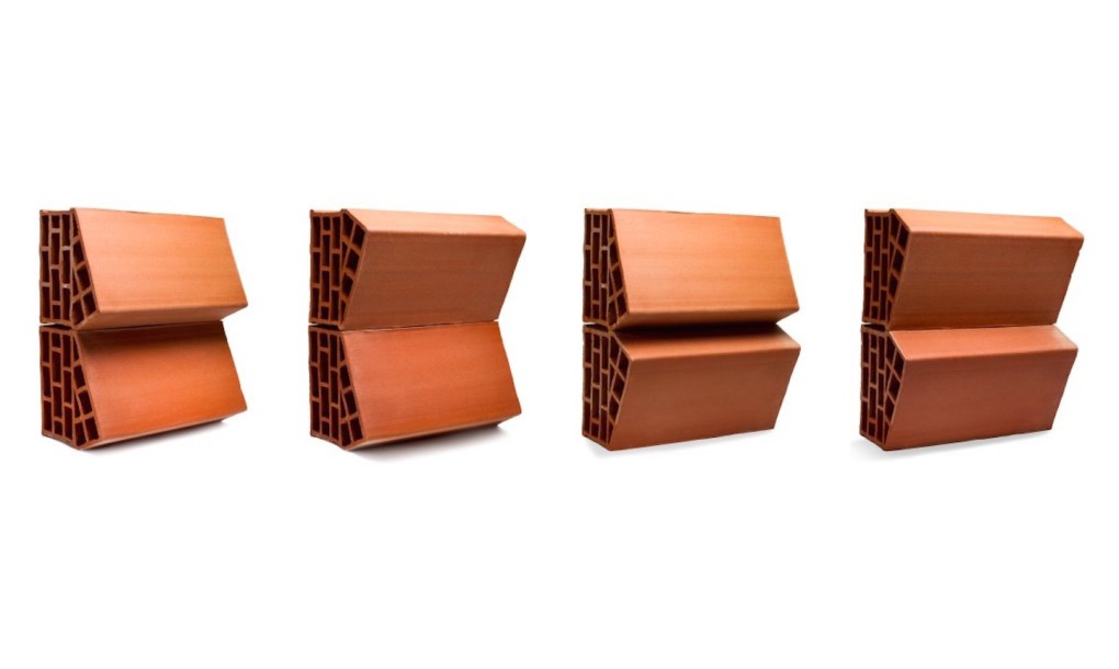 Unlike flat bricks, these angled bricks can be stacked in a variety of three-dimensional layouts for greater architectural expression and, because of similar dimensions, can also be combined with traditional clay bricks in wall construction. The BT brick’s built-in groove helps ensure that the same amount of mortar is poured on every brick to minimize waste. Uniformity during the installation process is achieved with the help of a joint spacer, which creates small and mortar-free triangular gaps between bricks to allow air to circulate through.