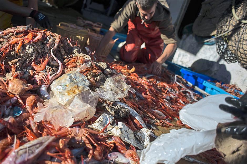 “Fisherman used to say, ‘This is not for me, I am throwing it back in the water’. Today we don’t even throw out a paper,” he said as he cast his trawl 60km from the coast.