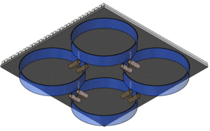 ![]() This is the bottom seight of a HELIOFLOAT platform. The four supporting cylindrical membrane skirts (which have a diameter of about 25 meters on a 60x60 platform) can be seen. |