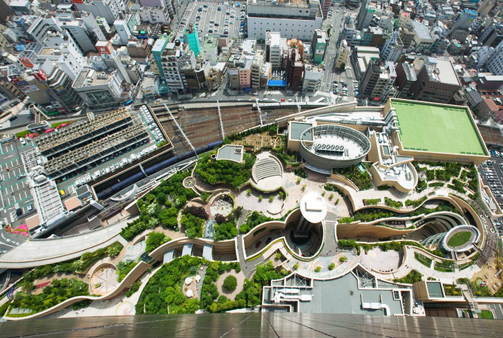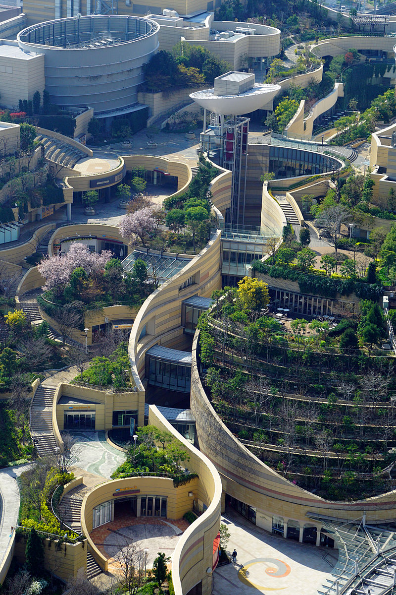 When we think about shopping malls, the typical image that comes to mind is a bland series of interconnected boxes with the food court probably being the most exciting part. Well Namba Parks, a massive retail and office compound in Osaka, Japan, totally blasts away the boring stereotype of what a mall is supposed to look like. Built in the footprint of the old Osaka baseball stadium, the awesome development, which was completed in 2003 by the Jerde Partnership, has an eight level rooftop garden that spans several city blocks and features tree groves, rock clusters, cliffs and canyons, lawns, streams, waterfalls, ponds and even space to grow veggies!