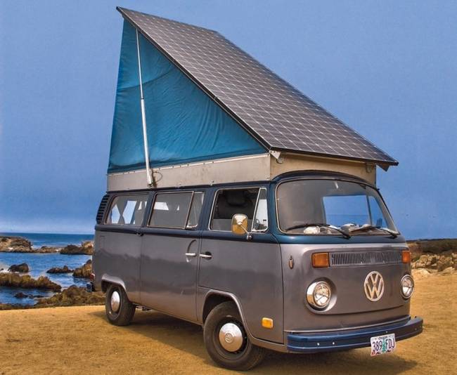 When the classic style of a '73 VW bus is combined with an electric vehicle conversion and an onboard photovoltaic array, you get an eye-catching family-sized clean transport solution.