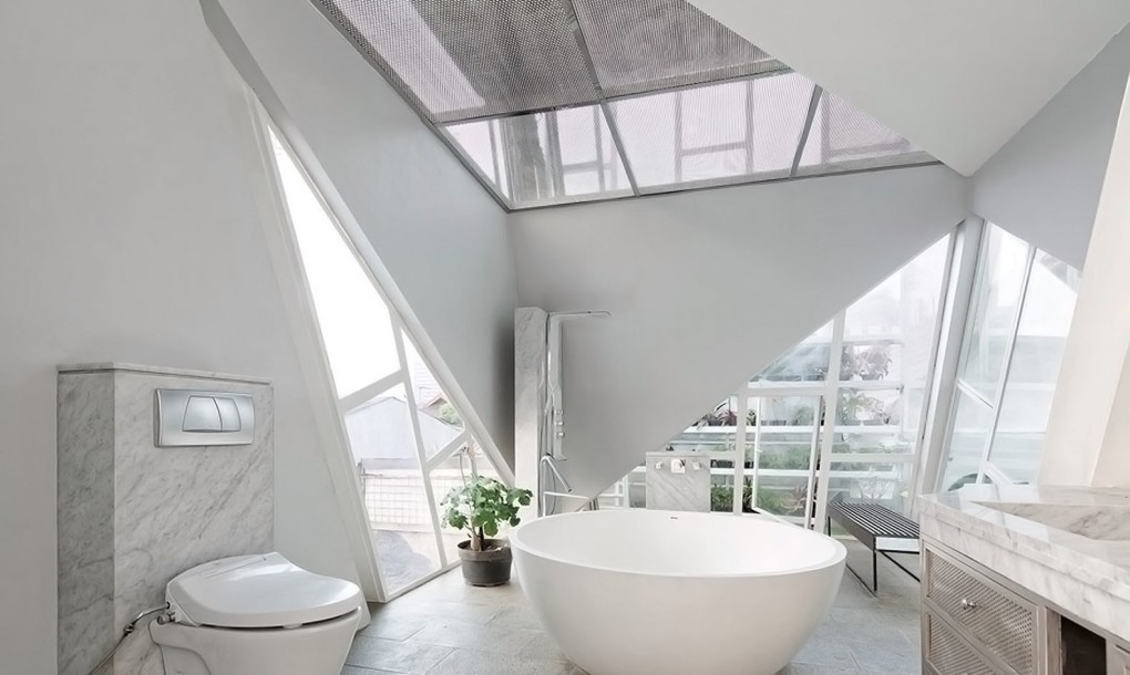 “The 16-square-metre bathroom area acts as a response to the current trend of urban lifestyle who [sic] normally spend more time in a bathroom,” said Pradono, “where users are able to have more quiet time, a contemplative room as well as a resting place while using smartphones, reading newspaper or social media as a communication device.”